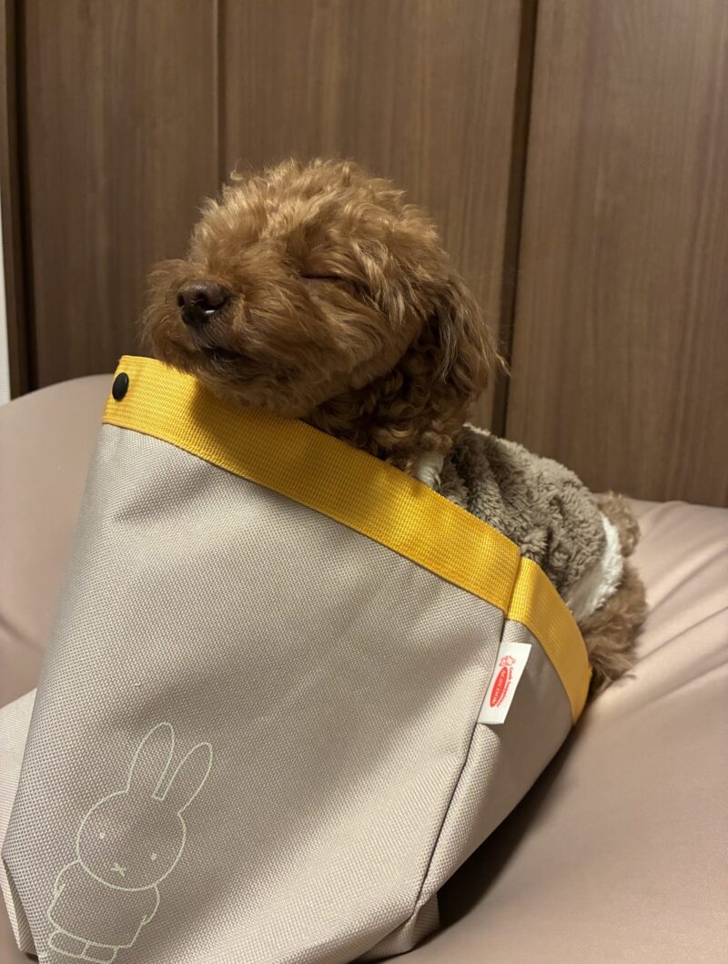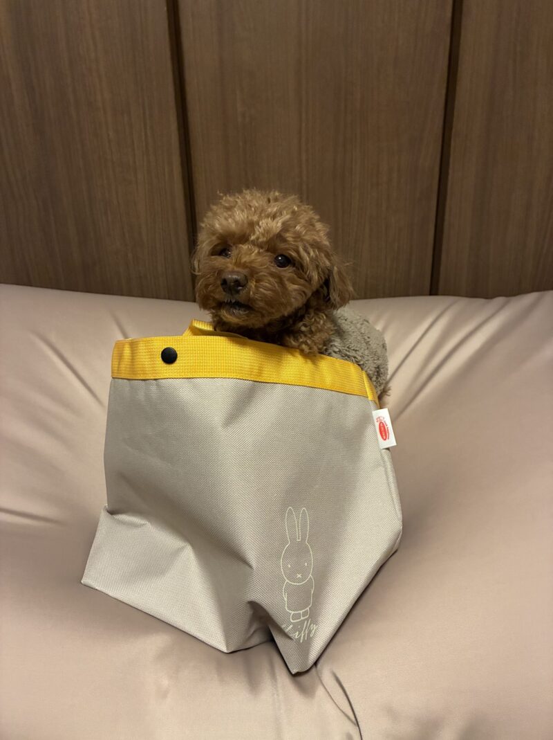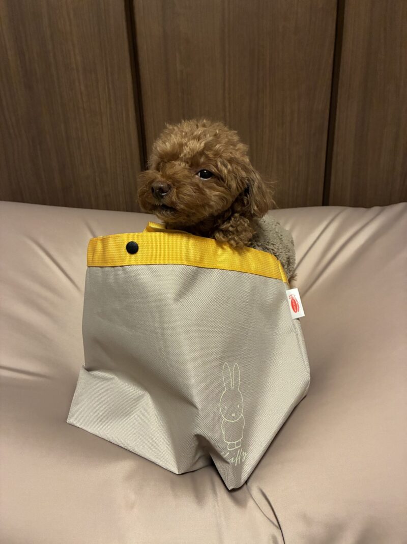 後光差してる犬🐶情報量多めのお散歩😯スープはるさめミッフィーバッグ届きました!😆愛犬が中へ…