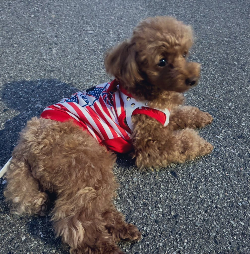 歩かないけど帰りたくもないらしい…🐶