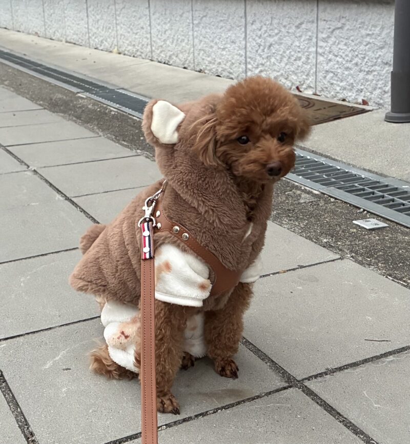 寒いのであんちゃん今年も腹巻き始めました🐶♪😌ポンポンダイジ