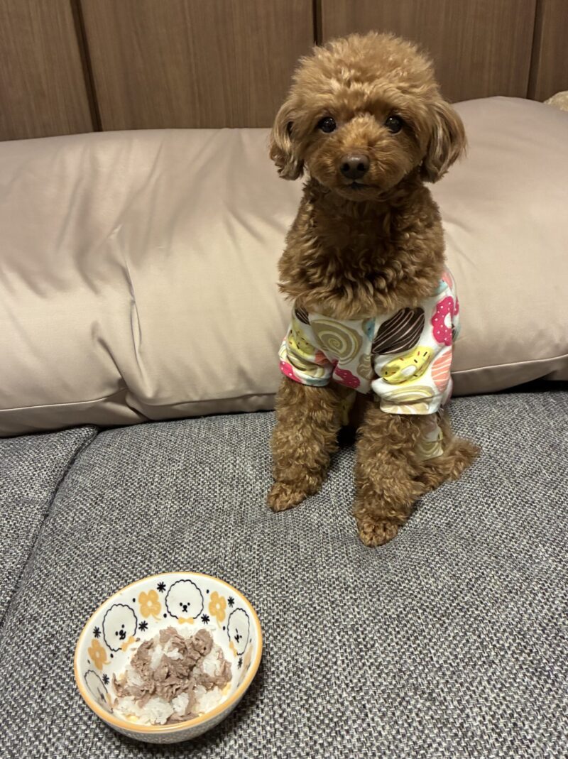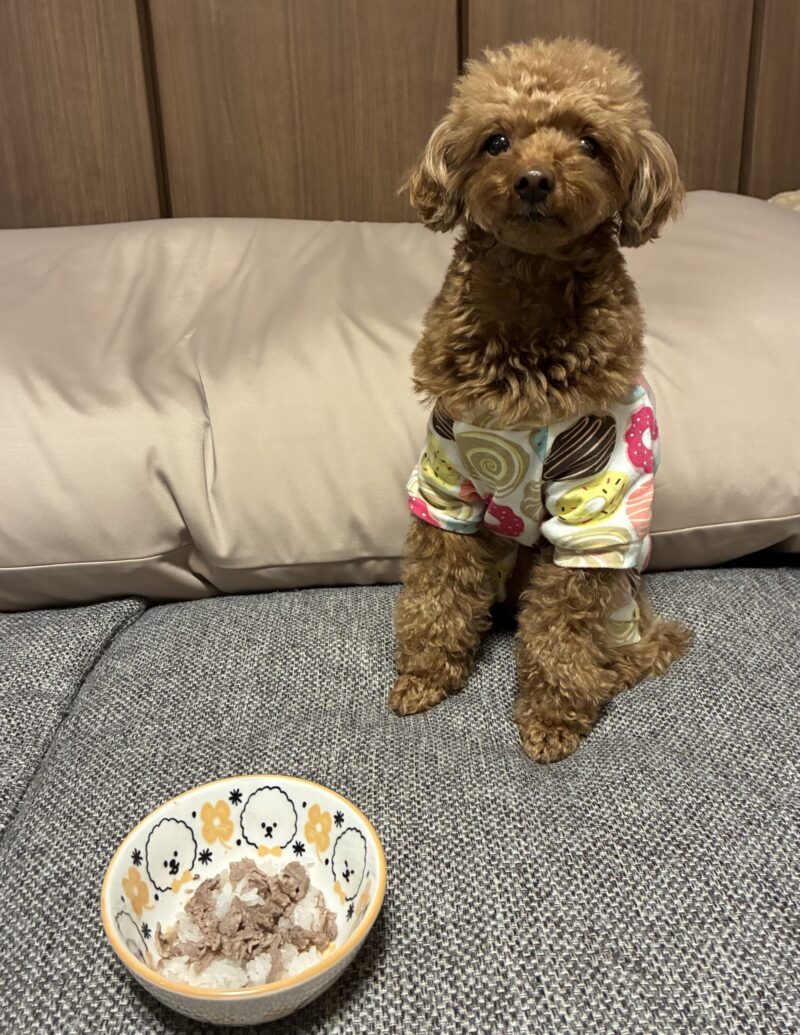 あんちゃんも少し牛肉と混ぜたやついただいたよ🐮🍚✨🐶