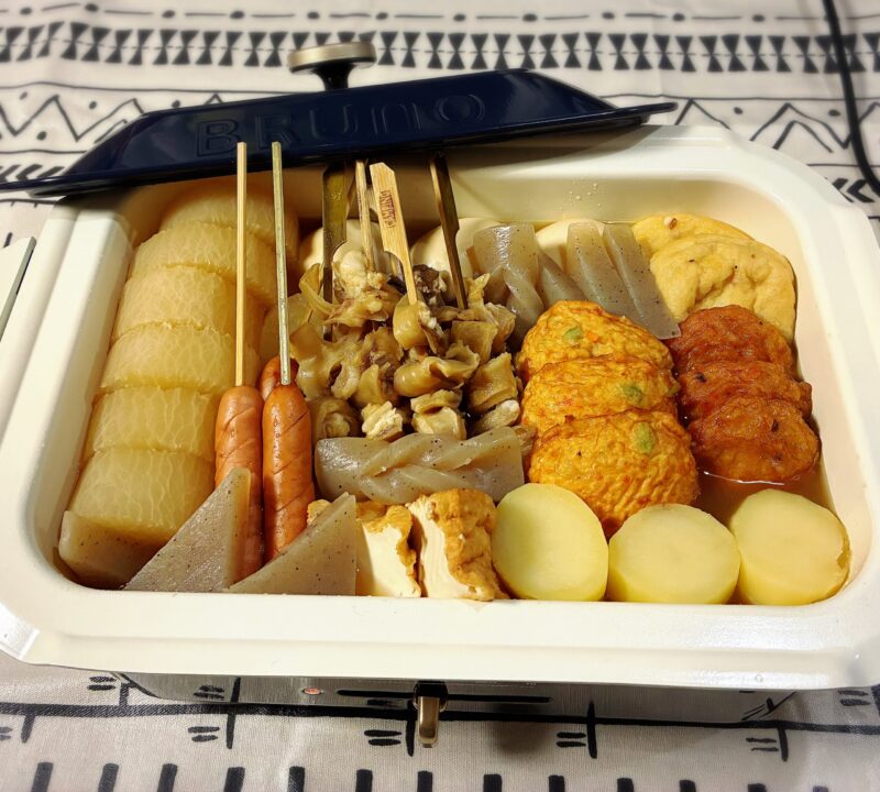 ブルーノのホットプレートのセラミックコート鍋でおでん屋さんごっこ♪