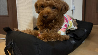 あんこ 三脚のカバンに乗る犬🐶コク旨かるび焼肉風てりたま🍔✨今年植えられた桜開花🌸お風呂あがり犬🐶