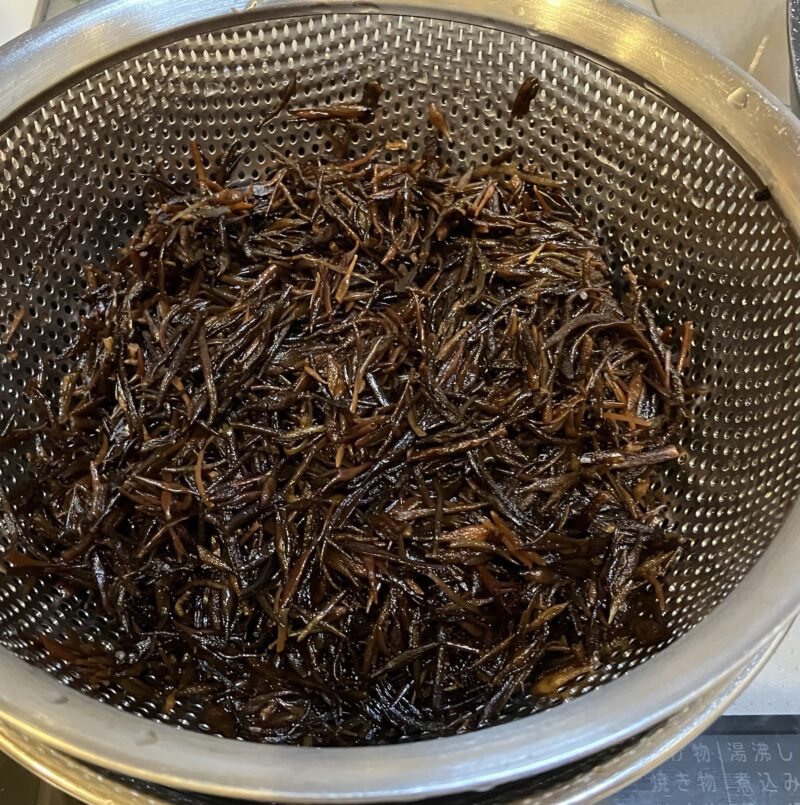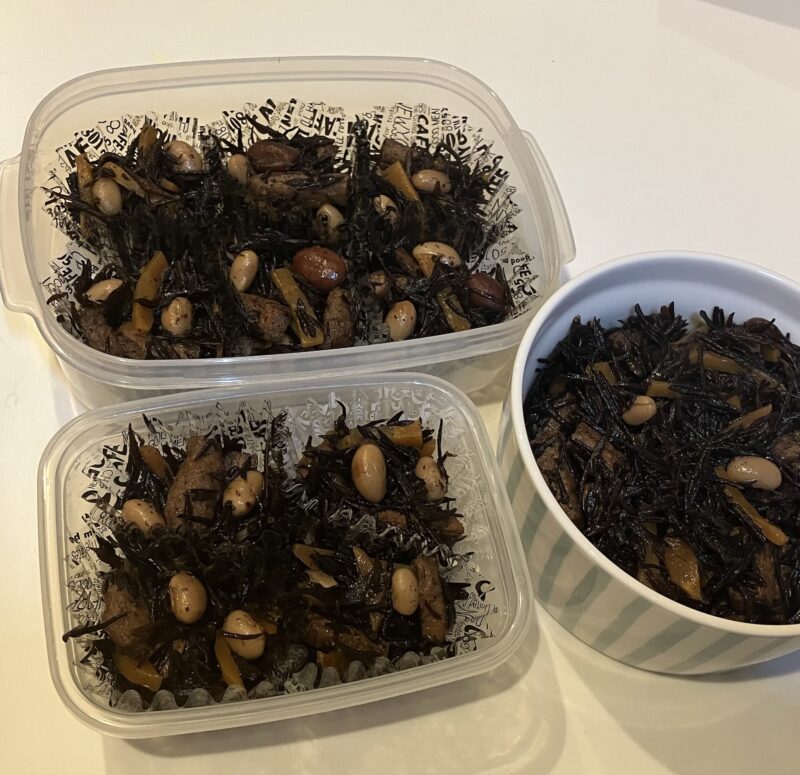 ①乾燥ひじきを30分ほどたっぷりめの水に浸ける。