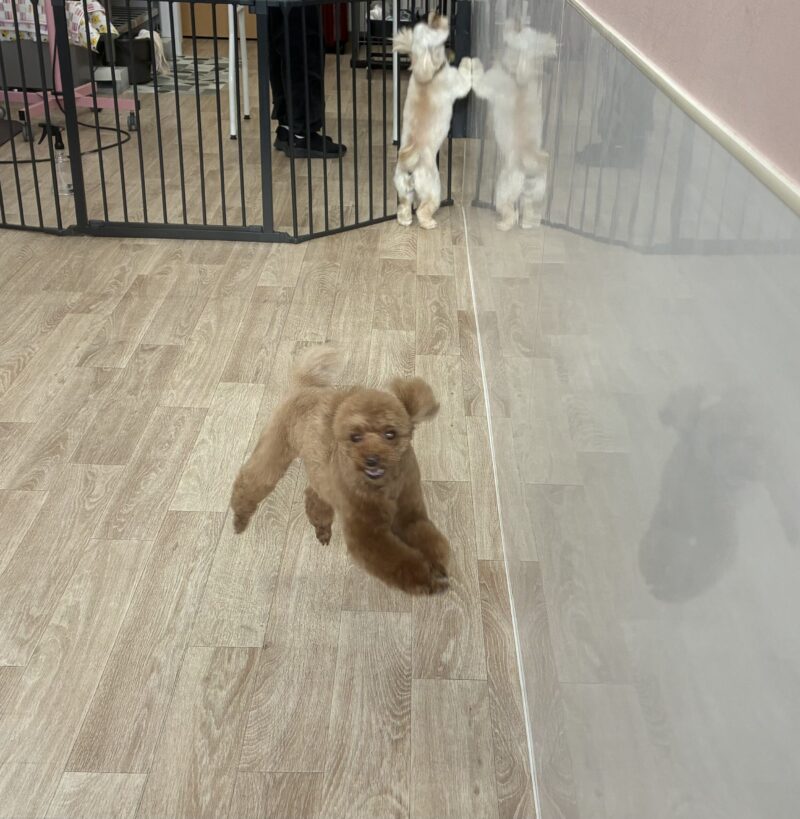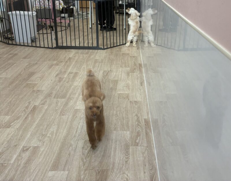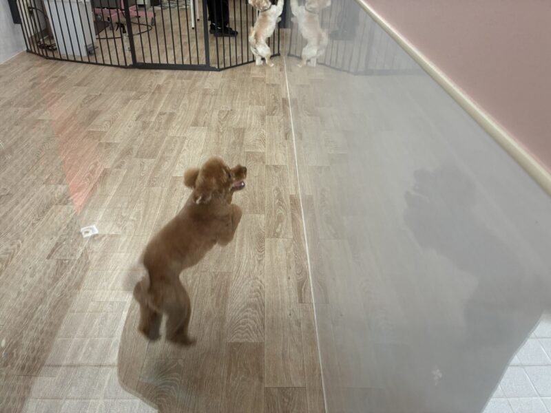 跳びすぎで股関節痛めてから、トリミング終わって迎えに行っても外の窓から動画を撮らなくなりました(喜んだら跳びすぎるので…)