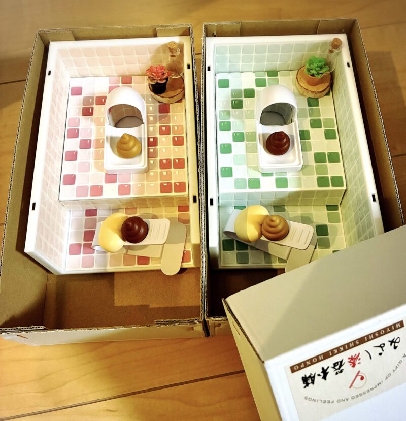 セリアで買ったおもちゃのUNCHITOBASHI(うんち飛ばしゲーム)💩用に作ったトイレ🚽✨