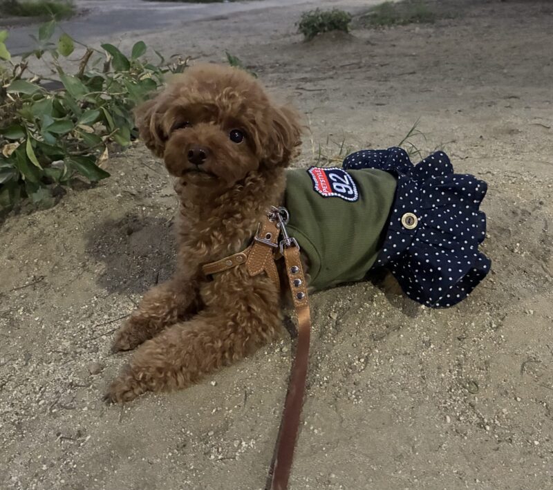 汚れるからこっち(アスファルト)来てって言っても無視されてます😅