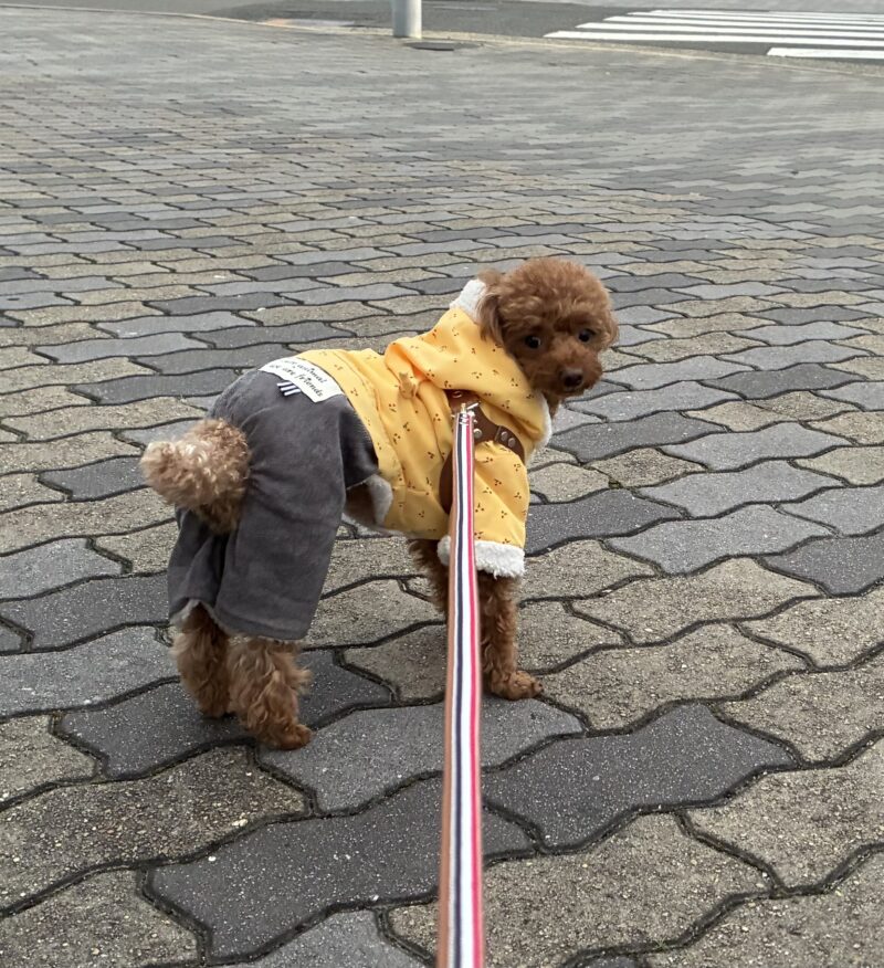さっきご挨拶したワンちゃんについて行きたいみたいです🐶
