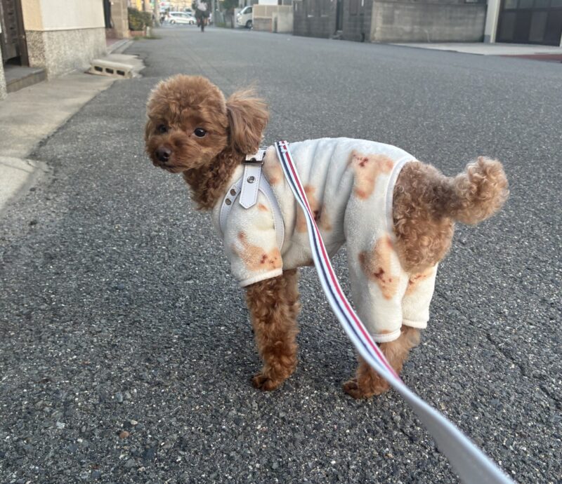 もこもこの服だと今までのハーネスはキチキチやったんでワンサイズ大きいの買いました🐶