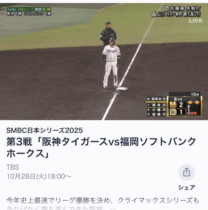 日本シリーズ試合第3戦を天一で見てます(TVer)🍜😂
