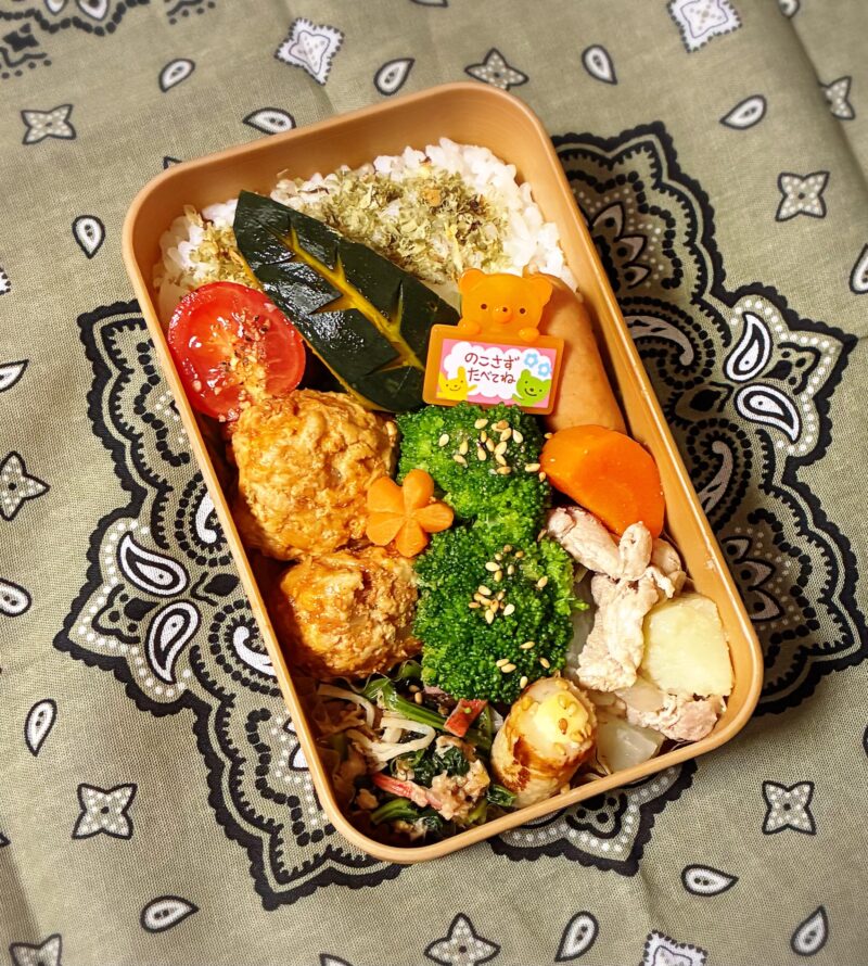 普段夫用のかぼちゃは普通ので、華にんじんもありませんが、息子のお弁当がなくなって作り置き冷凍が残ってたので入れてあげました🤭