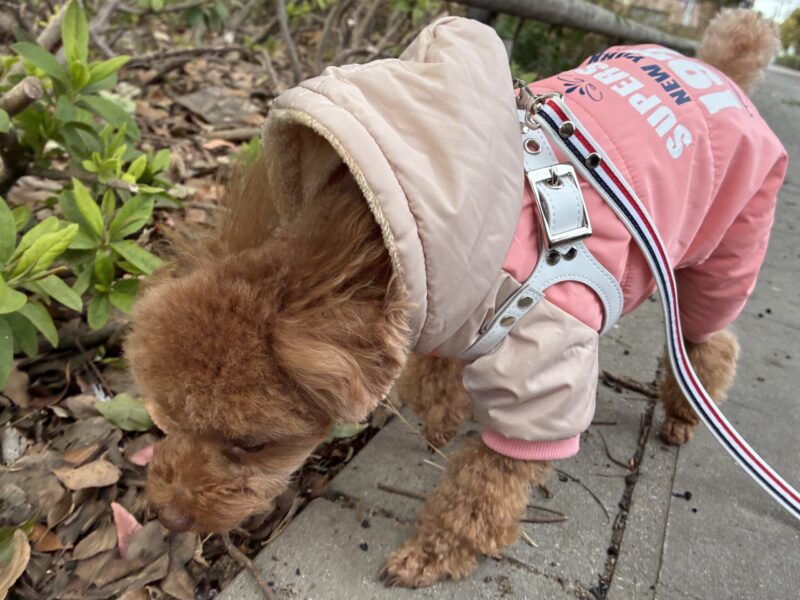 今日も寒いのでお散歩はすぐ帰ると思ったら、カラスたちがいっぱいいてジッと見てました🐶