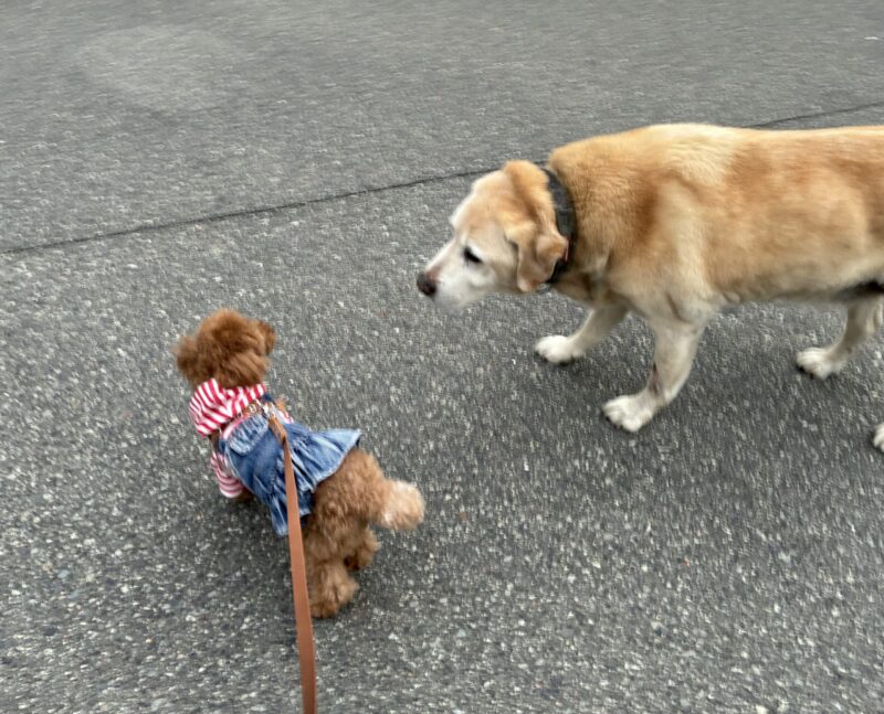 今日は2匹のワンちゃんが、あんこが待ってたら来てくれたんですが、来てくれたらやっぱり逃げてました😂